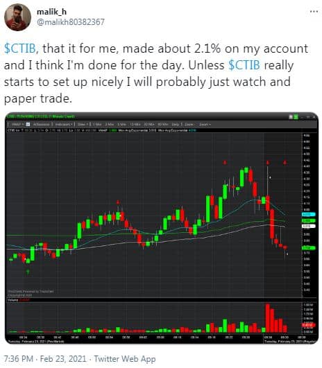 So, what’s exactly behind CTIB’s push today? Seemingly the day traders are making the stock gains count. A lot has been going around on social media where people are mentioning their profits made from boosting shares higher.