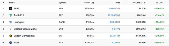 TurtleCoin (TRTL) is another top performer of the week that has been on a steady upward trajectory since the past week. TurtleCoin stands at its all-time high price level of $0.00088. The price saw an increase of 60% in the past 24 hours while the daily trading volume of $27,500,072 has went up by 50%. The cryptocurrency is primarily focused on speed and privacy.